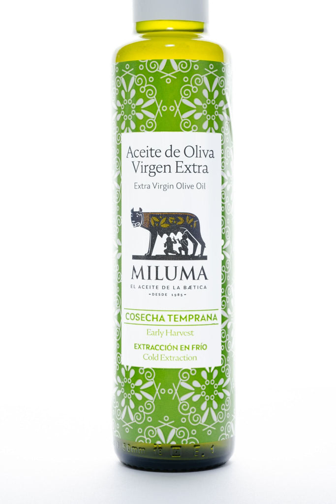 Miluma is het resultaat van nauwgezette controle gedurende het gehele productieproces van extra vergine olijfolie , van teelt tot botteling. Gelegen in een regio met een koud klimaat en grote hoogte in de Guadalquivirvallei, produceren de Picual-olijfbomen een olie met een voortreffelijke smaak en superieure kwaliteit, die in de regio algemeen erkend wordt.