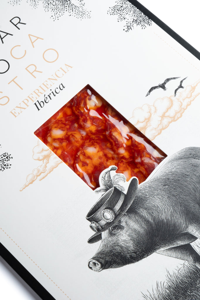 De eikel-gevoerde Iberische chorizo is een mix van zorgvuldig geselecteerd vlees van eikel-gevoerde Iberische varkens die in de dehesa zijn grootgebracht en gevoed met eikels. Deze chorizo is gemarineerd met natuurlijke ingrediënten volgens het traditionele recept: zout en Spaanse paprika.